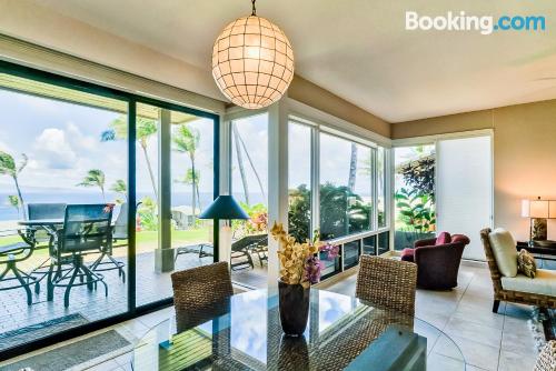 这家公寓提供1间卧室、1间浴室、床上用品、毛巾、带卫星频道的电视、用餐区、设施齐全的厨房以及海景庭院。这家空调公寓还配备休息区、洗衣机以及1间带淋浴设施的浴室。